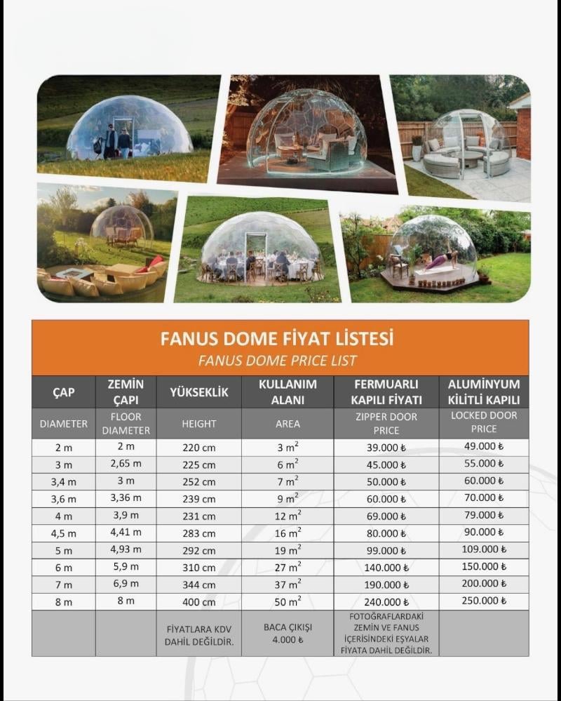 FANUS Dome Çadır, doğayı engellemeden yaşam alanınıza dahil eden modern, dayanıklı ve dikkat çekici bir çözümdür. Şeffaf estetiğiyle hem konforu hem de ferahlığı bir araya getirin!